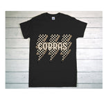Show your spirit in bold style with the Cobra Lightning Tee! Featuring a fierce triple lightning bolt design in a mix of checkered and leopard prints, this shirt brings a fun edge to any outfit.